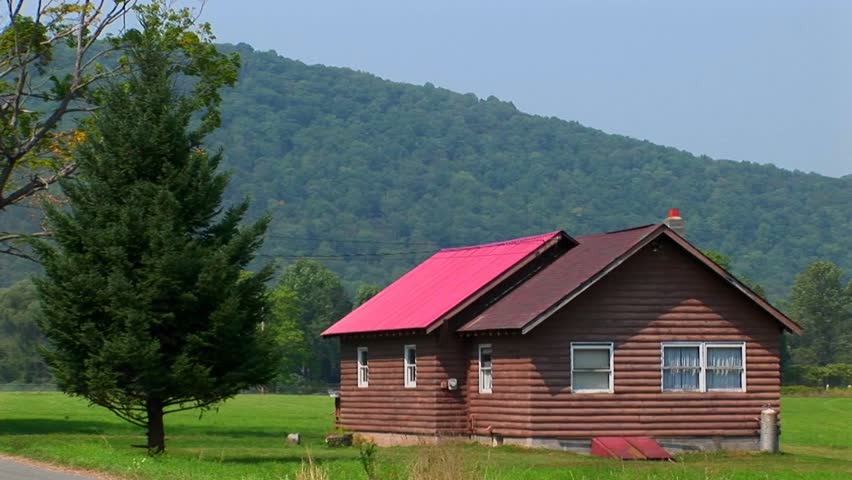 A Cabin In The Middle Of A Green Field Near The Allegheny Mountains